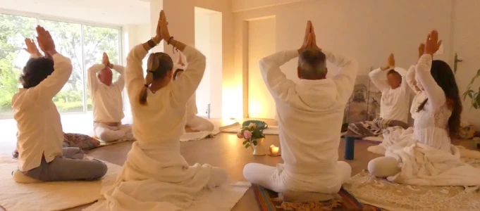 Cette salle de pratique de 50 m2 peut accueillir une quinzaine de personnes et a été spécialement réfléchie pour des stages en résidentiel et des retraites pour laisser de côté notre quotidien et être au contact de notre vraie nature.